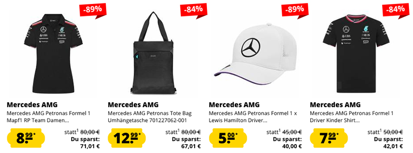Bei SportSpart läuft die Mercedes AMG Petronas Formel 1 Team Sale mit bis zu 90% Rabatt!