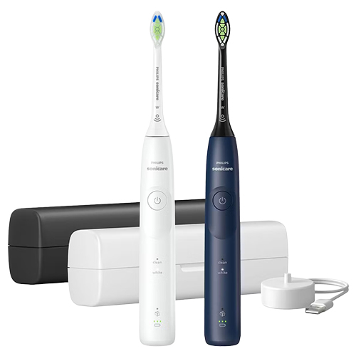 - Lieferumfang: 2 Handstücke, 2 Bürstenköpfe, Ladegerät & 2 Reiseetuis