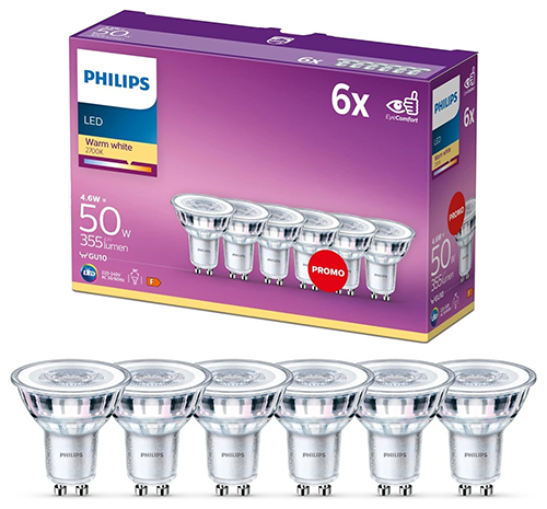 Bei Amazon gibt es gerade die Philips LED Classic GU10 Lampen im 6er-Pack für nur 8,99€ inkl. Prime-Versand.
