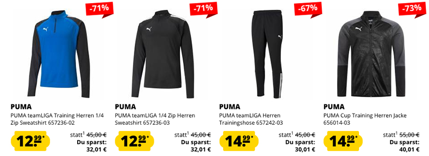 Ihr findet auf der Aktionsseite eine riesigen Anzahl Artikel für Damen und Herren, also schaut am besten einfach mal rein. Neben Shirts, Shorts und Trainingsbekleidung, gibt es auch viele Schuhe. Los geht es bereits ab 3,99€.