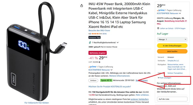 Ich weiss, ja nicht, wie es bei dir aussieht, aber wenn ich über den Deal Link auf die Artikelseite gehe, sieht das so aus: