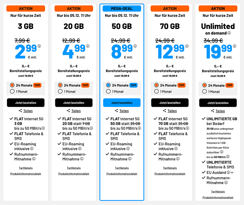 Hier einmal alle Tarife im Überblick: