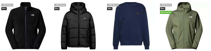 Mit von der Partie sind auch etliche Artikel bekannter Marken, die bereits reduziert sind. Hier lassen sich also ein paar gute Schnapper machen. Zur Auswahl stehen euch insgesamt über 1.400 Jacken und Oberteile.