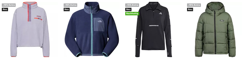 Bei SportScheck bekommt ihr aktuell gute 15% Extra-Rabatt auf Jacken- und Oberteil Essentials!