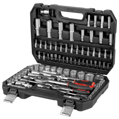 - Umfangreiches Set mit zahlreichen Zubehörteilen: Enthält flexible Verlängerungen und Zündkerzen-Steckschlüssel.