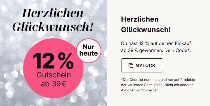 Der Rabatt richtet sich dabei nach eurem Bestellwert und staffelt sich mit dem Gutscheincode NYLUCK wie unten dargestellt.