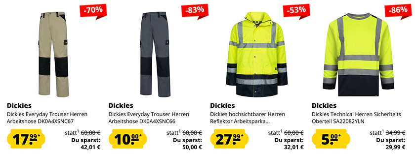 Bei SportSpar läuft gerade der große Dickies Workwear Sale mit vielen verschiedenen Artikeln zu tollen Preisen!