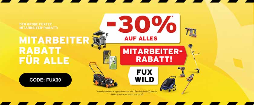 Top! 30% Rabatt auf (fast) alle Artikel im Fuxtec Onlineshop