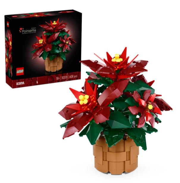 - LEGO Kunstblumen im Topf: Diese LEGO Interpretation einer in der Weihnachtszeit besonders beliebten Pflanze ist beweglich und besteht aus 5 sternförmigen Blütenständen mit roten Blättern (Brakteolen) und gelbem Cyathium in der Mitte