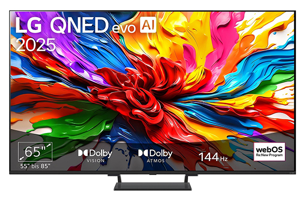 - 65 Zoll QNED evo Mini-LED TV mit starken Kontrasten, präzisem Dimming und brillanten Farben