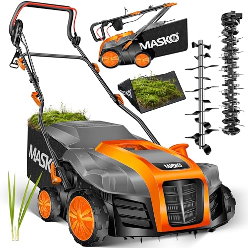Der MASKO® Elektro 2in1 Vertikutierer überzeugt mit seiner 2-in-1 Funktion für Vertikutieren und Rasenlüften.
