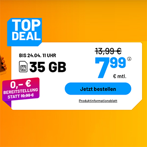 Bis morgen gibt es die neuen Sim.de Tarif-Angebote: Diese Woche bekommt ihr die Sim.de Allnet Flat im 1&1 5G Netz mit z.B. 35 GB Datenvolumen für nur 7,99€ monatlich.