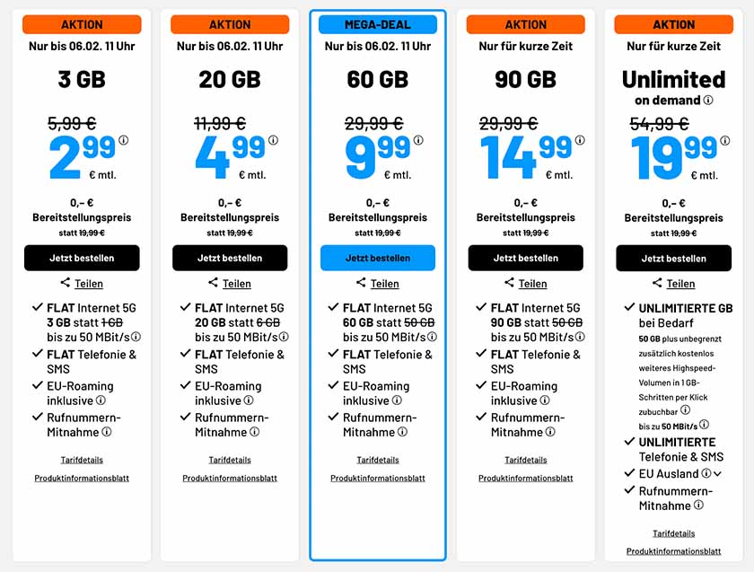 Hier einmal alle Tarife im Überblick: