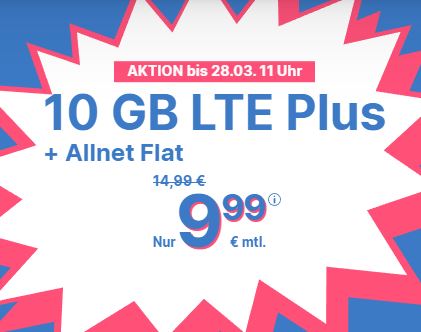 Aktuell bekommt ihr bei den beliebten Crash-Tarifen eine Allnet Flat mit 30 GB Datenvolumen im Telekom-Netz für nur 9,99€ im Monat! Die Anschlussgebühr bei diesem Angebot beträgt 29,99€. Dafür ist der Vertrag monatlich kündbar und ihr könnt ganz ...