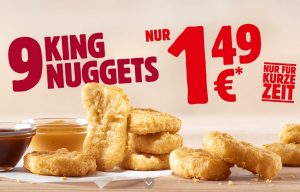 Bei Burger King der 9er Chicken Nuggets nur 1,49 Euro oder BigKing und Crispy Chicken je nur 1,99 Euro