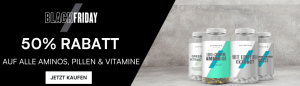 Black Week Sale bei MyProtein mit 50% Rabatt auf alle Aminos, Pillen und Vitamine