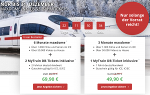 Wieder da! 2x ICE Bahntickets + 6 Monate Maxdome nur 69,90 Euro – oder 1 Ticket 49,90 Euro