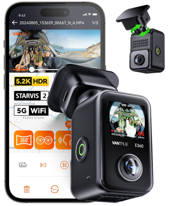 VANTRUE E360 5.2K Panorama Dashcam Auto Vorne Innen, Dual STARVIS 2 HDR 360° für nur 179,99€ inkl. Versand