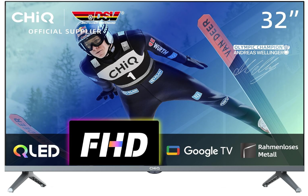 CHIQ Fernseher 32 Zoll QLED TV, FHD, HDR, Rahmenloses Metall-Design für nur 161,49€ inkl. Versand