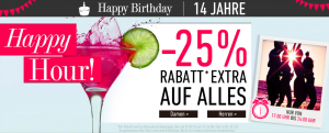 Bei Dress-for-Less.de gibt es wieder mal eine neue Aktion, dank der ihr 25% Extrarabatt auf das Gesamte Sortiment im Onlineshop bekommt. Der Rabatt wird mal...