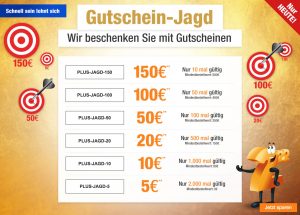 Gutschein-Jagd: Bis zu 150,- Euro Rabatt im Plus Onlineshop!