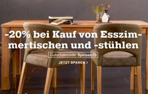20% Rabatt beim Kauf von Esszimmertischen und -stühlen im Mömax Onlineshop