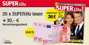 20 Ausgaben der Zeitschrift SUPERillu für nur effektiv 6,- Euro dank 30,- Euro Verrechnugsscheck