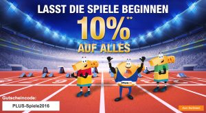 Bei Plus bekommt ihr aktuell satte 10% Rabatt auf das gesamte Sortiment! Um den Rabatt zu erhalten, nutzt ihr einfach im Warenkorb den Gutscheincode PLUS-Spiele2016...