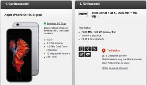 Otelo Allnet-Flat XL mit 2,5GB Datenvolumen + Telefon- und SMS-Flat für nur 29,99 Euro monatlich + Apple iPhone 6s 16GB in Grau für einmalig 4,99 Euro