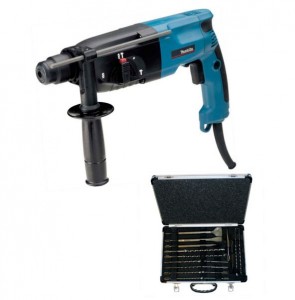 Makita HR2450 + D-19180 Blau/Schwarz Bohrhammer + SDS Plus Bohrer- und Meißelset für nur 124,89 Euro inkl. Versand