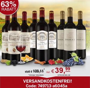 Bordeaux XXL Weinprobierpaket mit 9 Flaschen edlem Rotwein (3 verschiedene Weine) für nur 39,99 Euro inkl. Versand